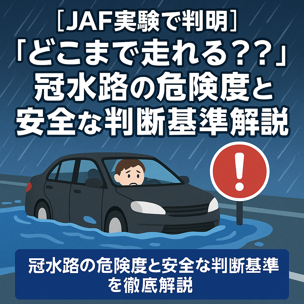 JAFの冠水路実験で明らかになった「走行可能な水深の限界」と「安全に避ける判断基準」を徹底解説。ゲリラ豪雨や台風時のアンダーパス冠水、洗い越し通過のリスクを実例で紹介。初心者でも命を守るための行動がわかります。